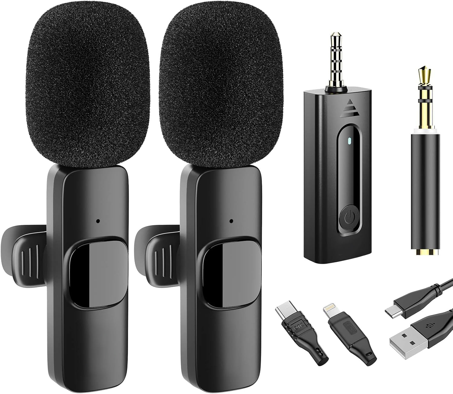 👥 Dual Wireless Microphone Set: Includes 2 transmitters and 1 receiver for two-person interviews, presentations or vlogs; also supports single-mic recording