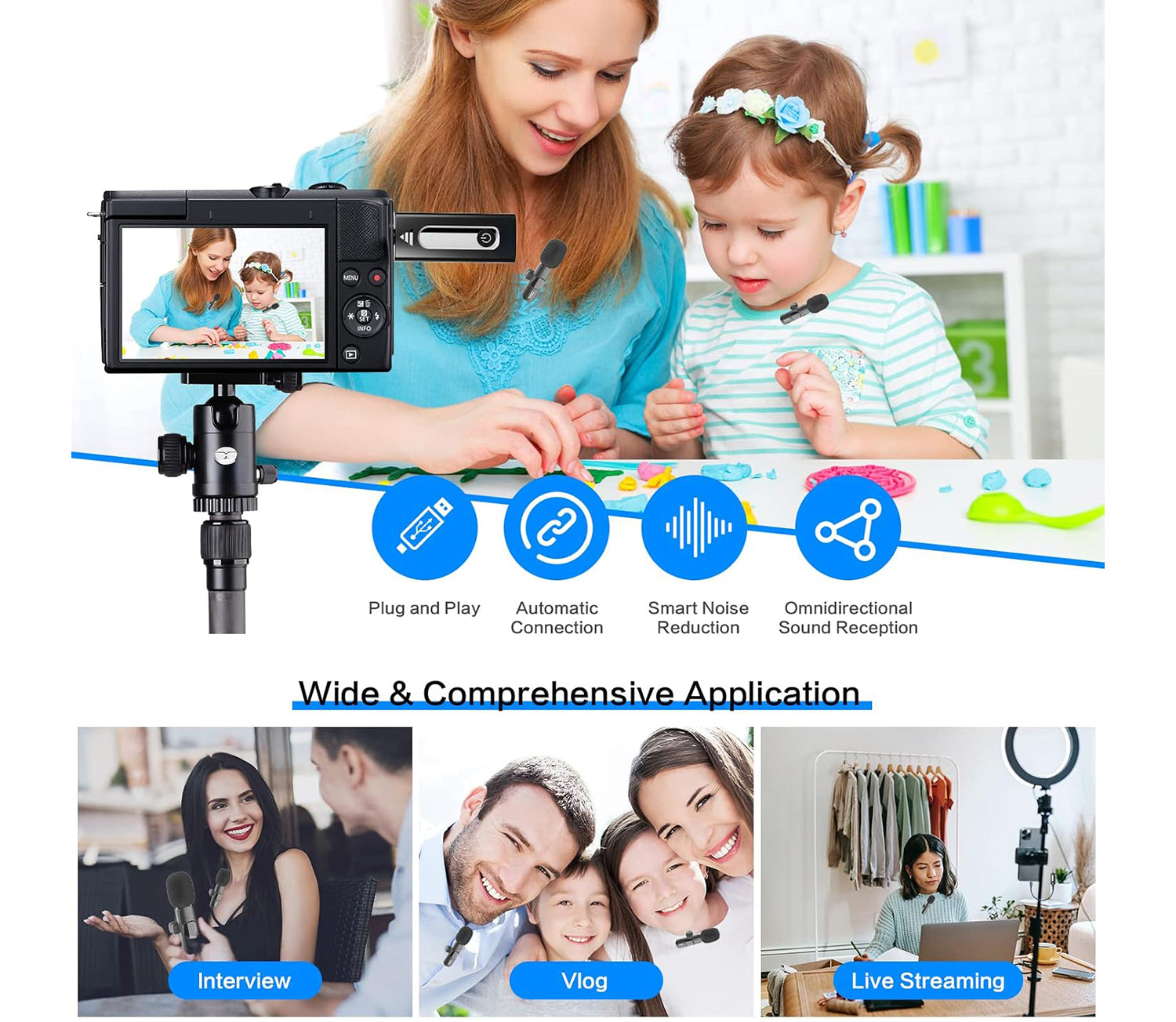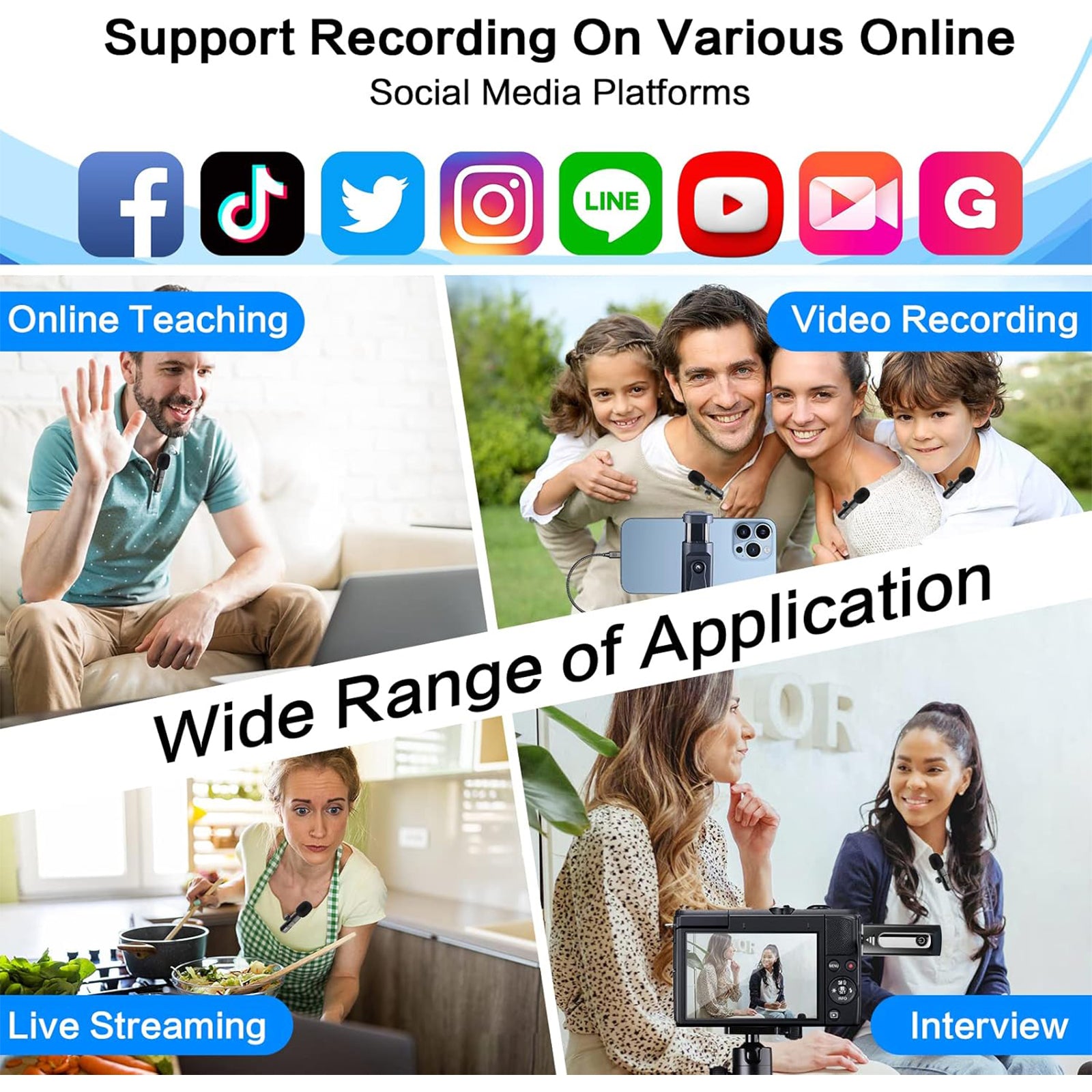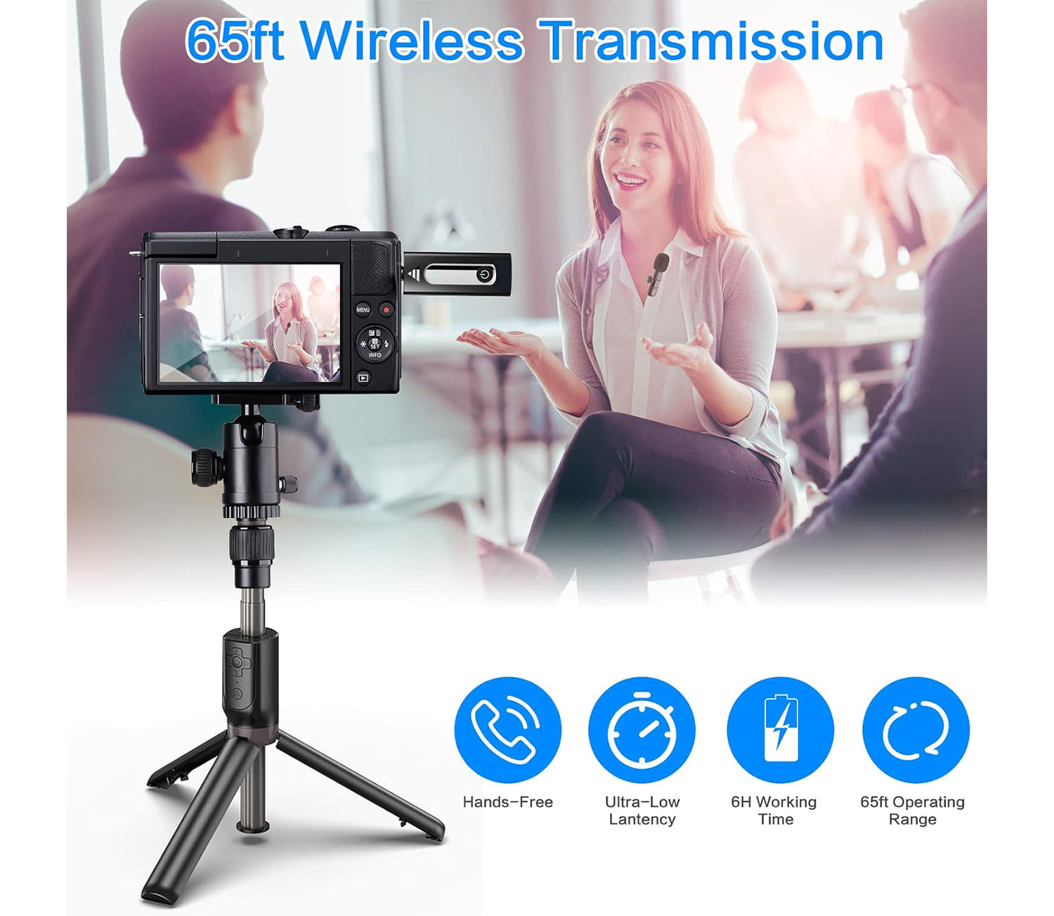 🔋 Long Range & Battery Life: Up to 5–6 hours of continuous use and stable wireless transmission up to 65ft, ideal for YouTube, TikTok, livestreams and meetings