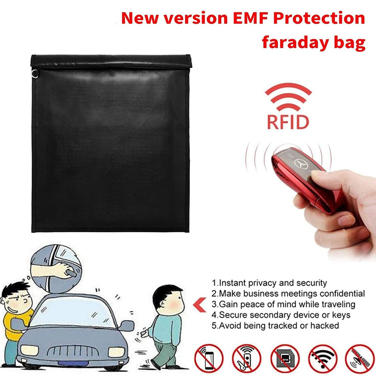 Superior Multifunctional Protection — Made with high-quality silicone-coated fiberglass and advanced metallic shielding fabric, this Faraday bag blocks all signals (RFID, WiFi, Bluetooth, GPS, NFC, Cellular) while withstanding temperatures up to 2000℉ for maximum safety.