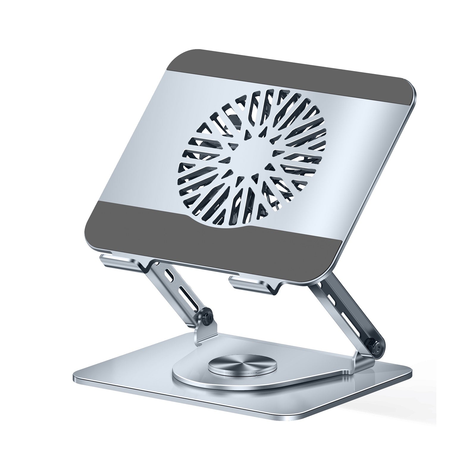 Upgrade your workspace with the Navor Adjustable Laptop Stand featuring silent cooling fans and a smooth 360° rotating base. The ergonomic aluminum riser supports 10–17-inch laptops, reduces neck strain, and improves airflow for better performance. Foldable, durable, and portable—ideal for office, home, gaming, and travel setups.