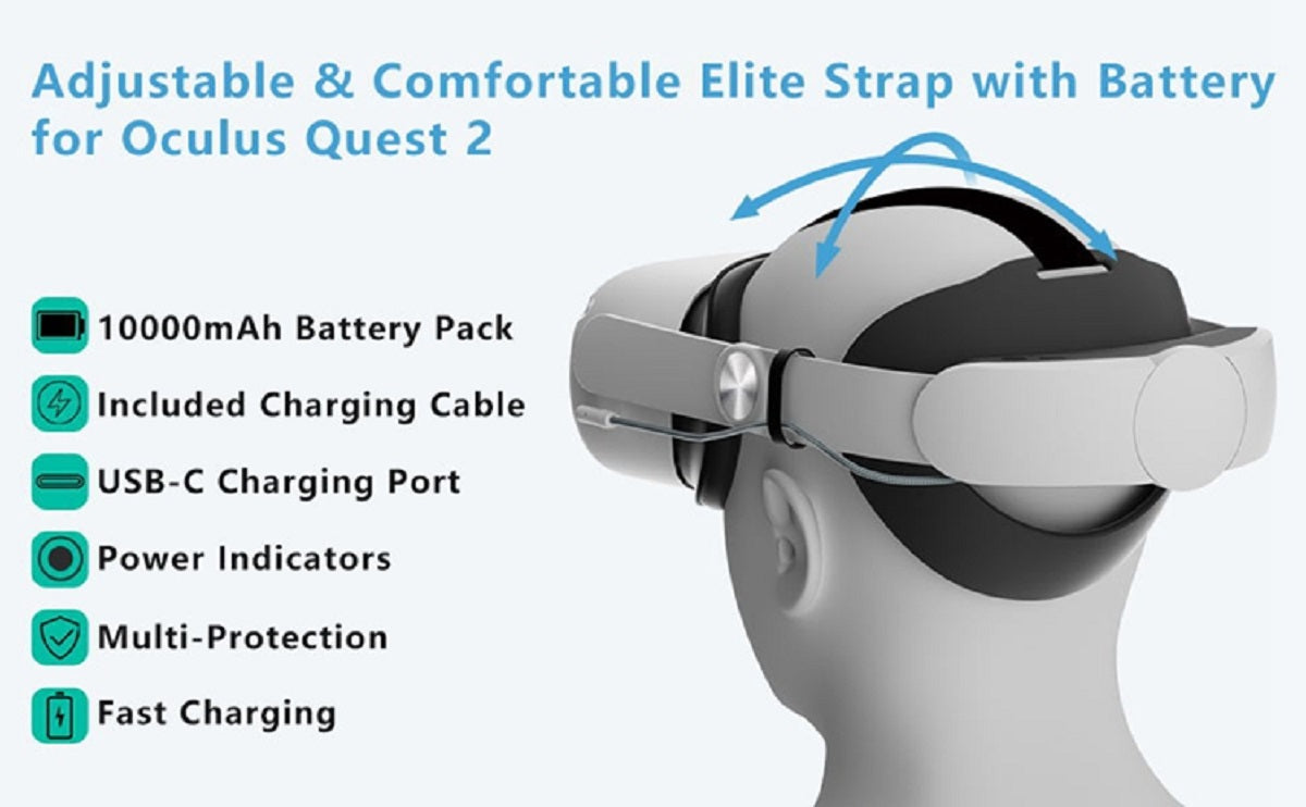 🔋 Extra 8 Hours Playtime – Built-In 10000mAh Battery: Integrated high-capacity 10000mAh rechargeable battery extends VR gaming sessions by up to 8 hours. USB-C fast charging with real-time LED power indicators keeps you informed and ready to play.