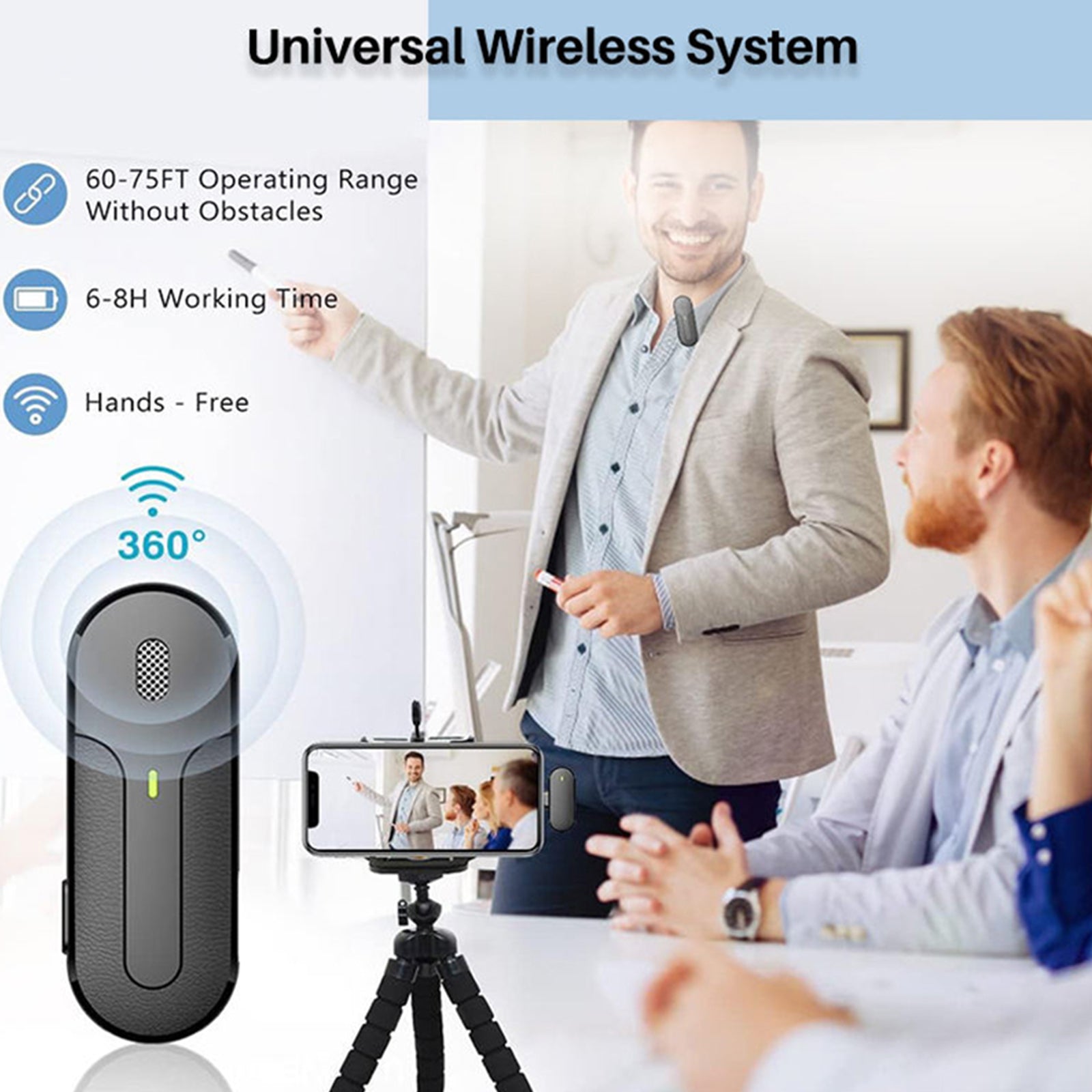 navor Wireless Lavalier Microphone delivers clear, professional audio for videos and interviews. Dual clip-on mics record two speakers at once, with one-touch noise reduction and instant mute. Charging case provides up to 40 hours of total use. Compatible with smartphones and tablets for content creation, livestreaming, podcasting, and social media recording.