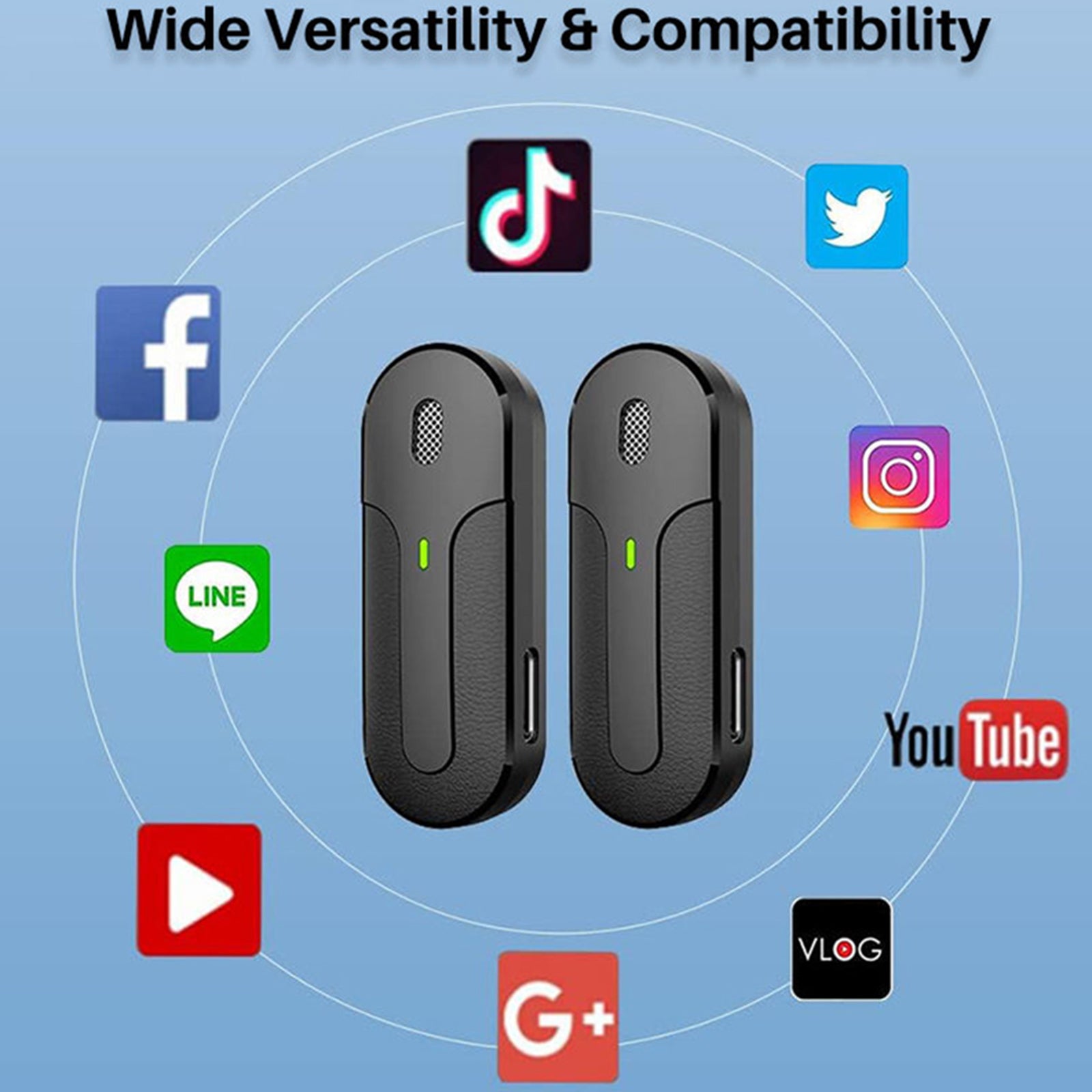 🎤 Dual Wireless Microphones: Record two speakers simultaneously for interviews, podcasts, livestreams, and collaboration videos with clear, balanced stereo sound.