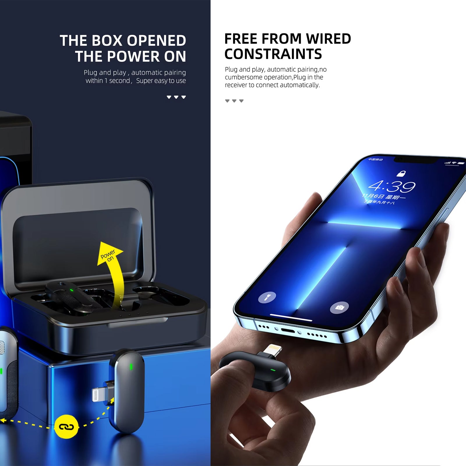🔋 40H Total Battery with Charging Case: Each mic works up to 5 hours per charge, and the 600mAh portable charging case extends total usage to 40 hours for all-day recording.